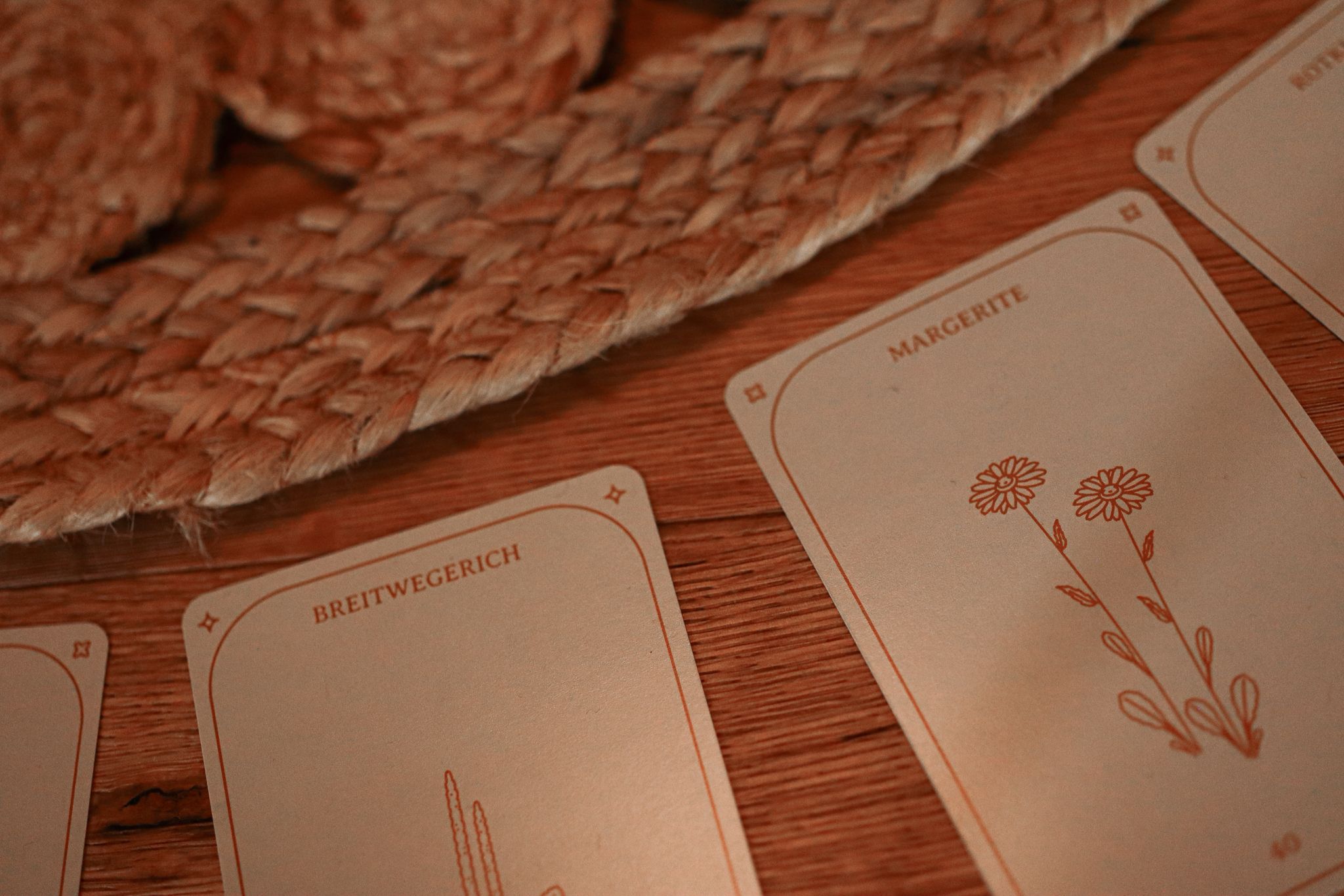 Lass dich von deiner Intuition leiten – ziehe mit geschlossenen Augen eine Karte und vertraue darauf, dass genau die richtige Pflanze zu dir findet. Öffne dich für ihre Botschaft und spüre nach, was sie in dir auslöst.